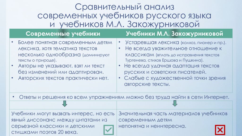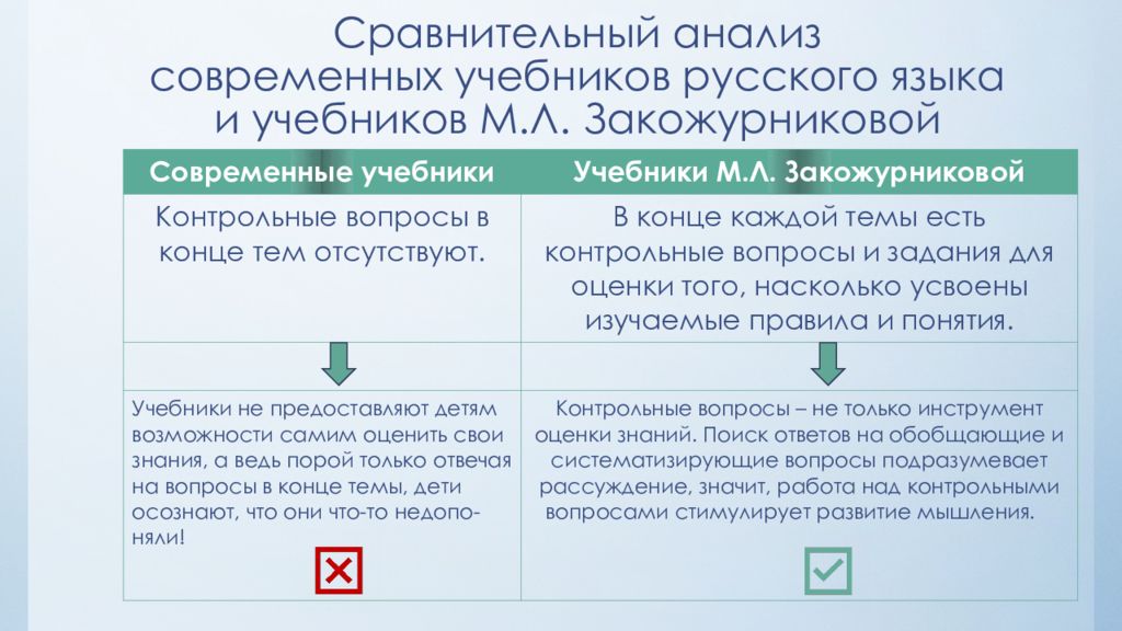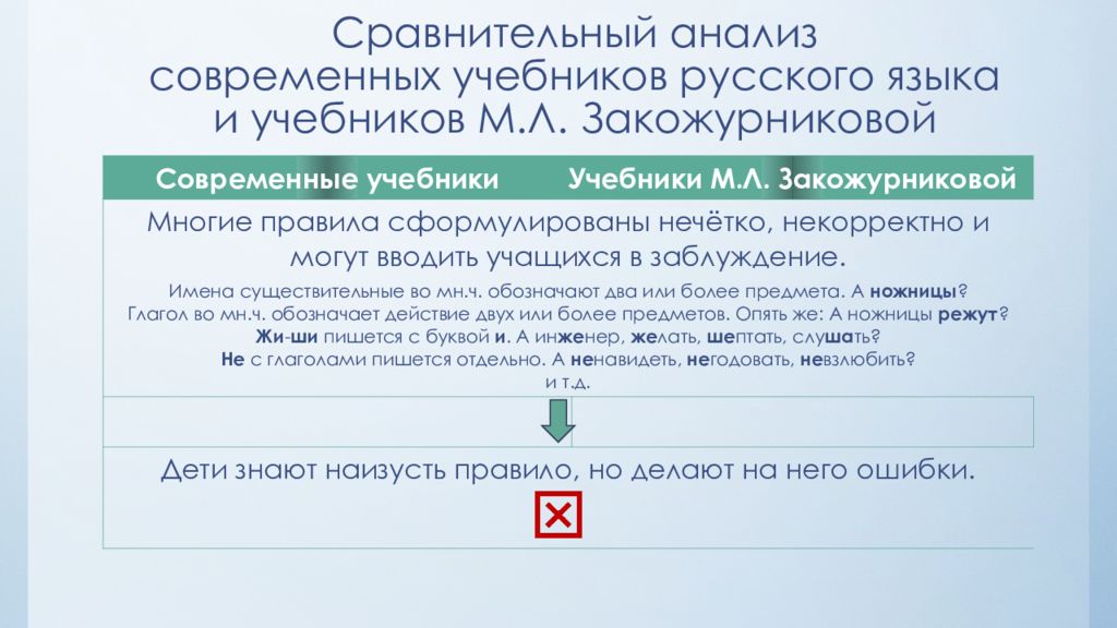 Слайд 8: Сравнительный анализ современных учебников русского языка и учебников М.Л. Закожурниковой