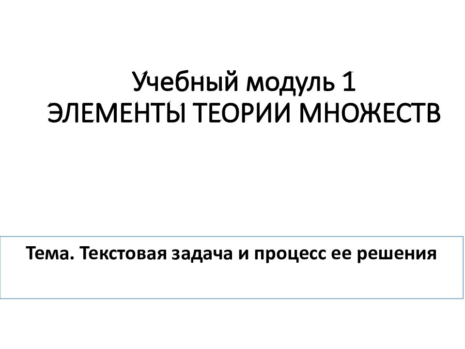 Первый слайд презентации: Учебный модуль 1 ЭЛЕМЕНТЫ ТЕОРИИ МНОЖЕСТВ