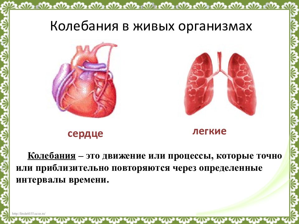 сердце легкие Колебания – это движение или процессы, которые точно или приблизительно повторяются через определенные интервалы времени.
