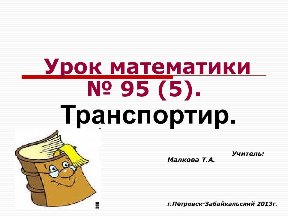 Учитель: Малкова Т.А. г.Петровск-Забайкальский 2013г. Урок математики № 95 (5). Транспортир.