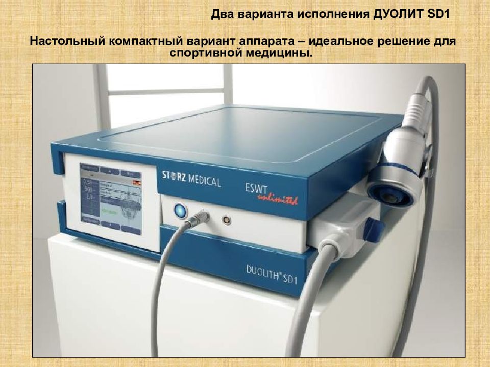 Настольный компактный вариант аппарата – идеальное решение для спортивной медицины. Два варианта исполнения ДУОЛИТ SD1
