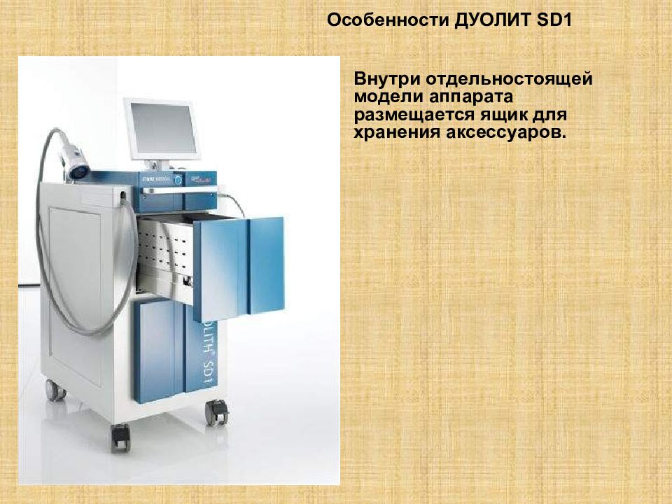 Внутри отдельностоящей модели аппарата размещается ящик для хранения аксессуаров. Особенности ДУОЛИТ SD 1