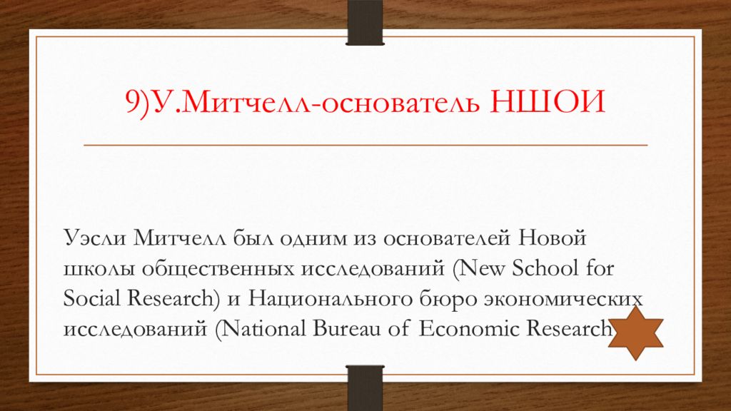 Слайд 17: 9 ) У.Митчелл -основатель НШОИ
