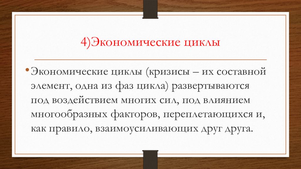 Экономические циклы (кризисы – их составной элемент, одна из фаз цикла) развертываются под воздействием многих сил, под влиянием многообразных факторов, переплетающихся и, как правило, взаимоусиливающих друг друга.
