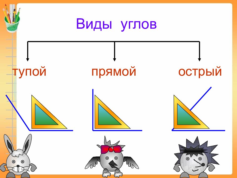 Первый слайд презентации: Угол. Прямой угол. Виды углов