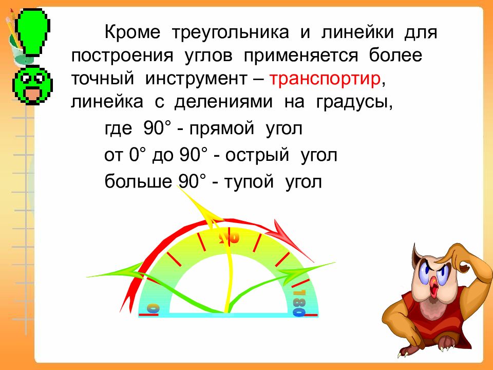 А я помогу построить тупой угол Возьмите линейку и карандаш. Проведите прямую линию А затем ещё одну, как у меня Приложите треугольник. Что скажете?