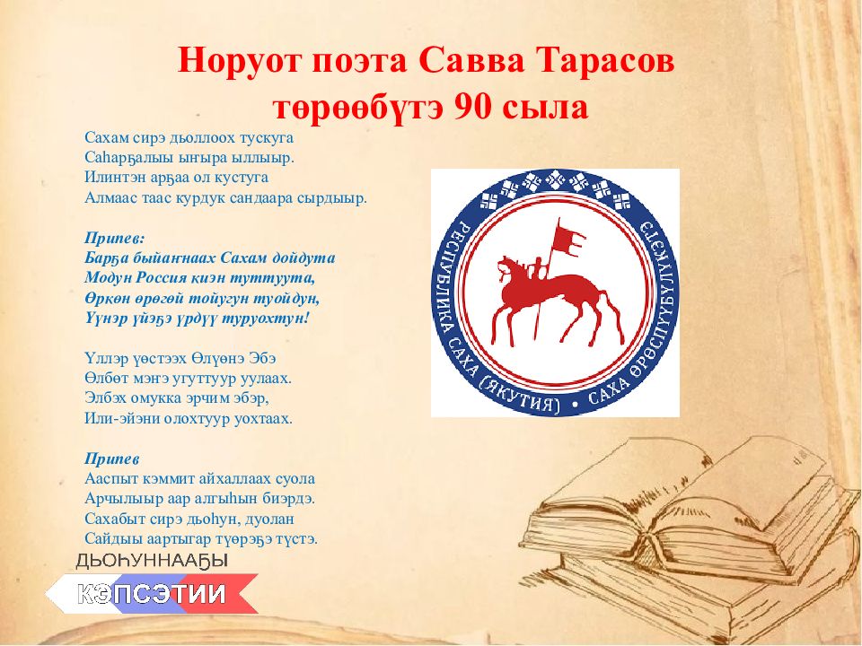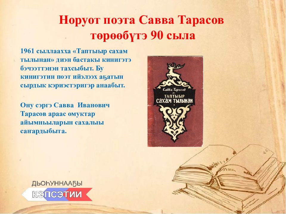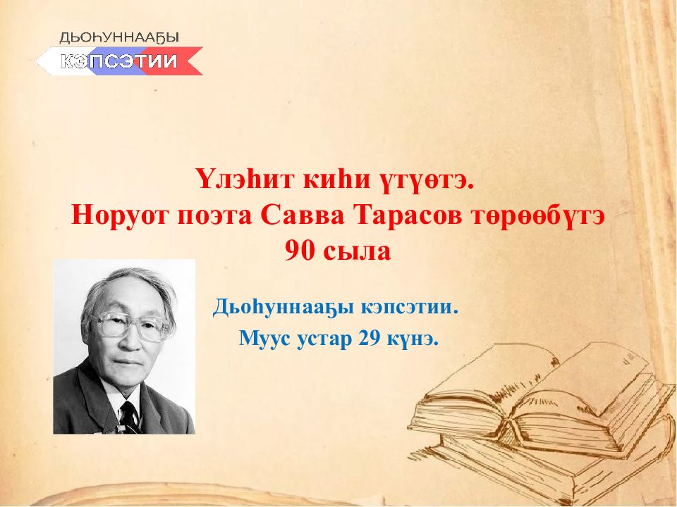 Слайд 2: Норуот поэта Савва Тарасов төрөөбүтэ 90 сыла