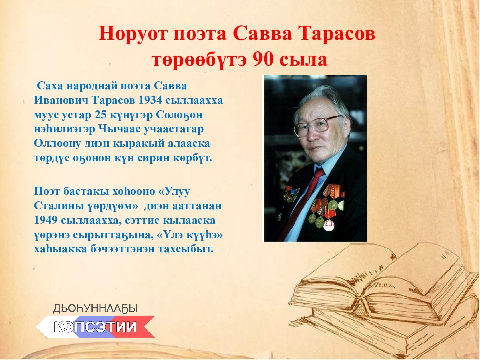Слайд 6: Норуот поэта Савва Тарасов төрөөбүтэ 90 сыла