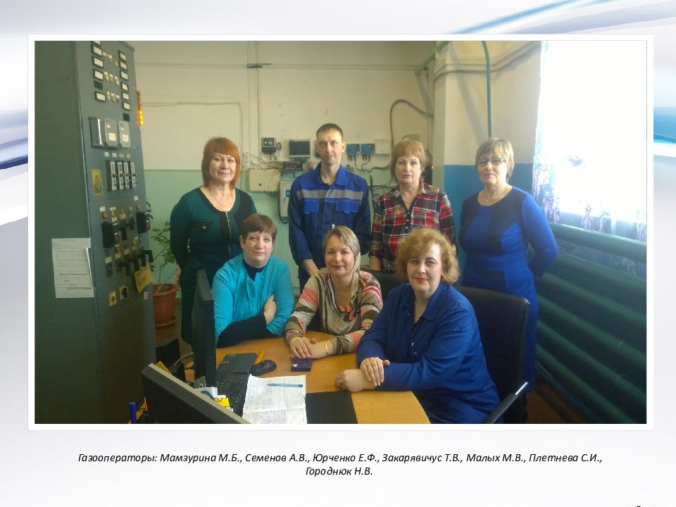 Слайд 12: Газооператор ы : Мамзурина М.Б., Семенов А.В., Юрченко Е.Ф., Закарявичус Т.В., Малых М.В., Плетнева С.И., Городнюк Н.В