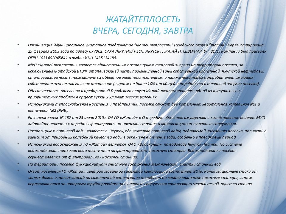 Первый слайд презентации: м униципальное унитарное предприятие Жатайтеплосеть