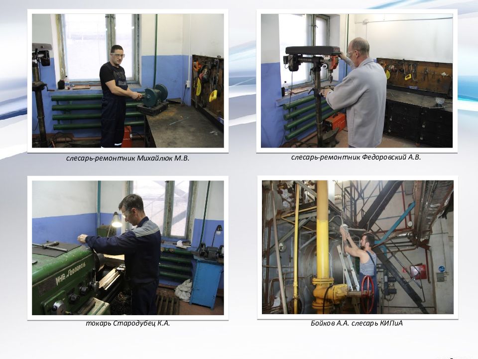 слесарь-ремонтник Михайлюк М.В. слесарь-ремонтник Федоровский А.В. токарь Стародубец К.А. Бойков А.А. слесарь КИПиА