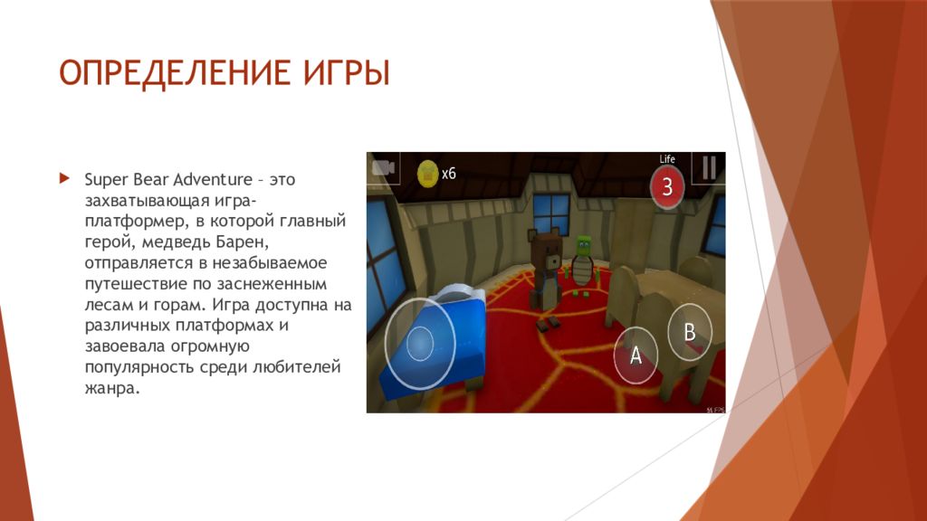 Super Bear Adventure – это захватывающая игра- платформер, в которой главный герой, медведь Барен, отправляется в незабываемое путешествие по заснеженным лесам и горам. Игра доступна на различных платформах и завоевала огромную популярность среди любителей жанра.