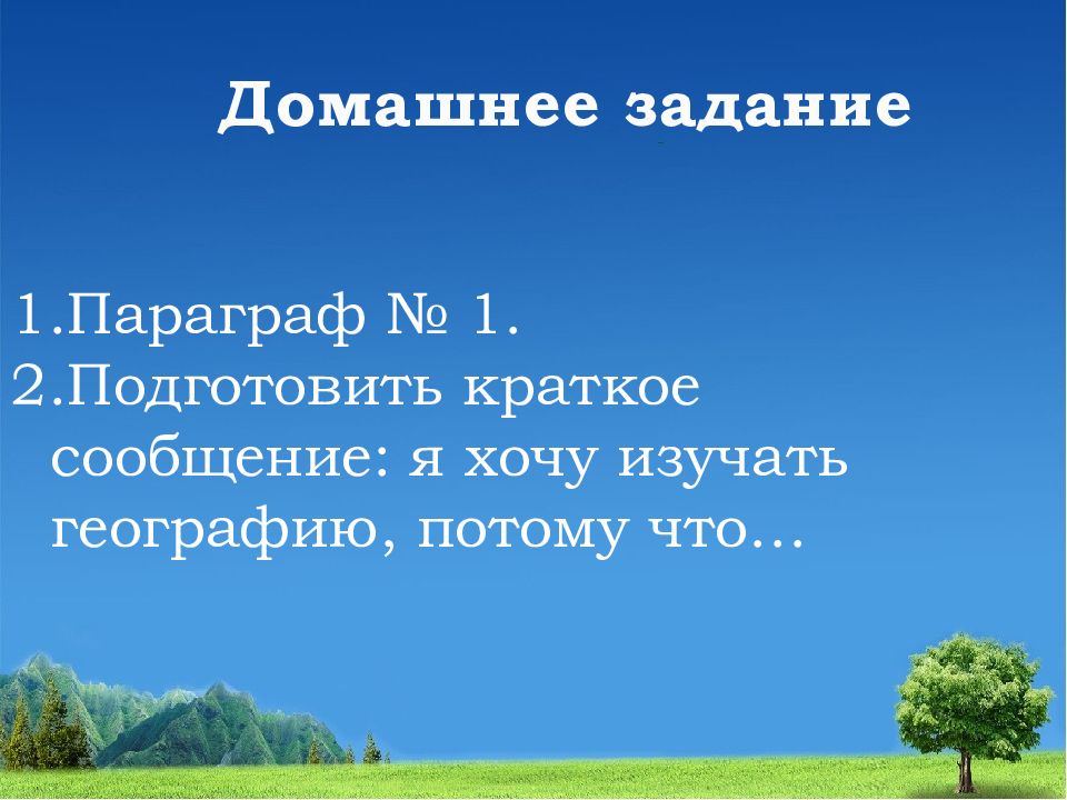 Домашнее задание Параграф № 1. Подготовить краткое сообщение : я хочу изучать географию, потому что…