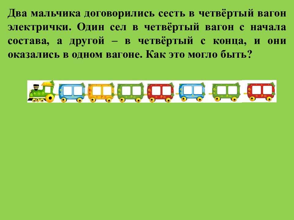 Два мальчика договорились сесть в четвёртый вагон электрички. Один сел в четвёртый вагон с начала состава, а другой – в четвёртый с конца, и они оказались в одном вагоне. Как это могло быть?