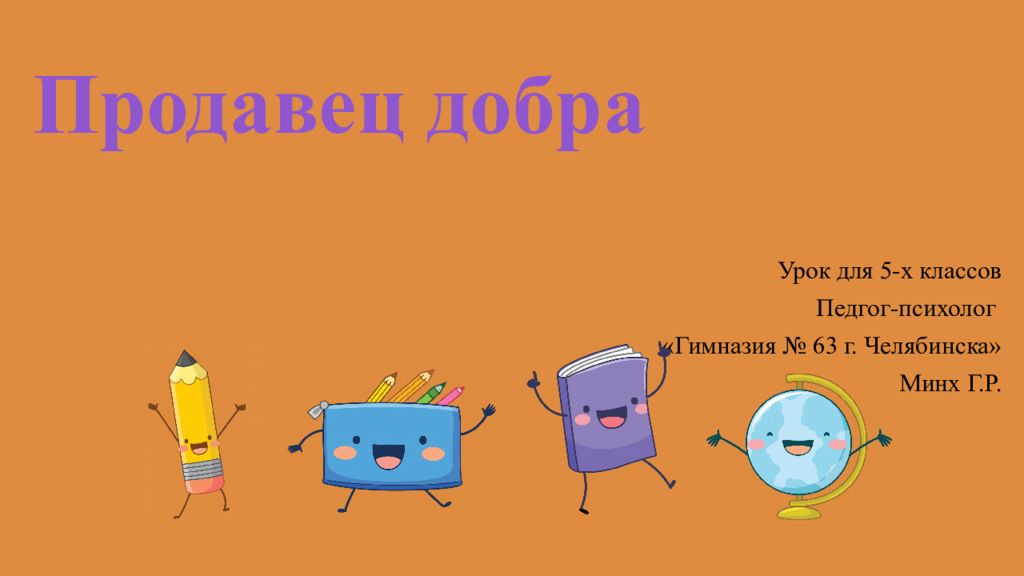 Урок для 5-х классов Педгог-психолог «Гимназия № 63 г. Челябинска» Минх Г.Р. Продавец добра