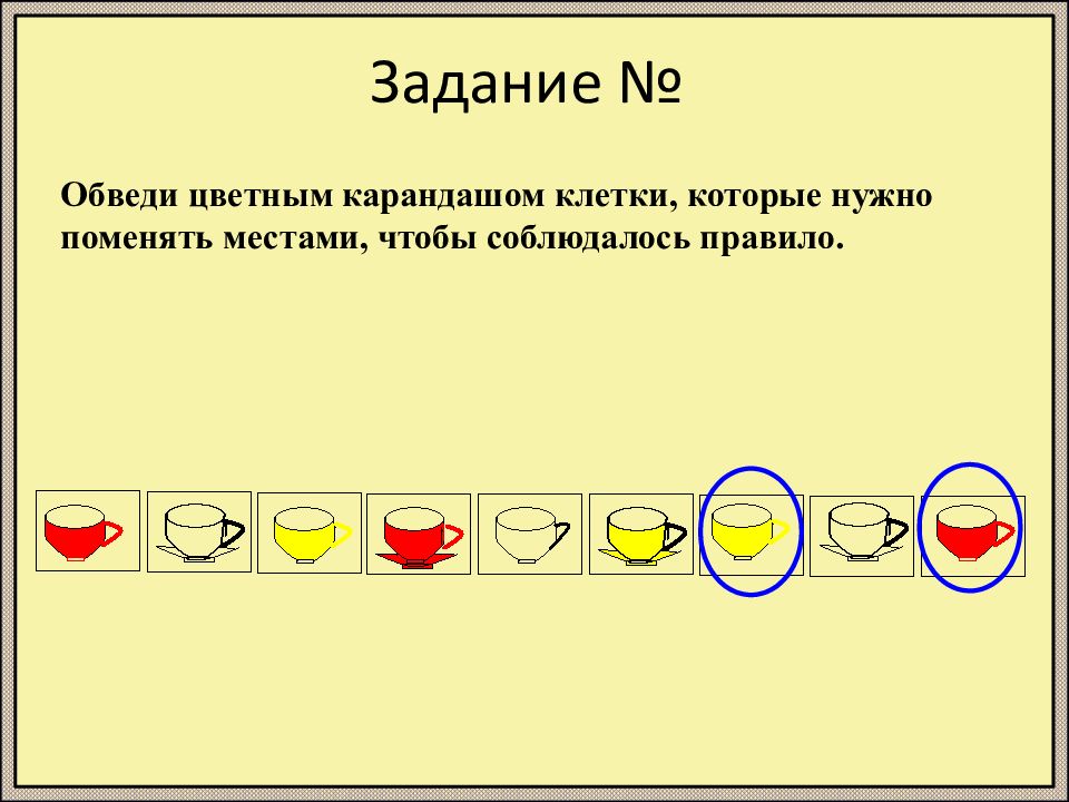 Задание № Обведи цветным карандашом клетки, которые нужно поменять местами, чтобы соблюдалось правило.