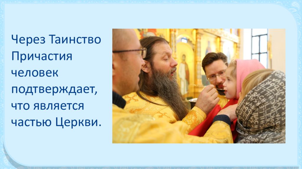 Через Таинство Причастия человек подтверждает, что является частью Церкви.