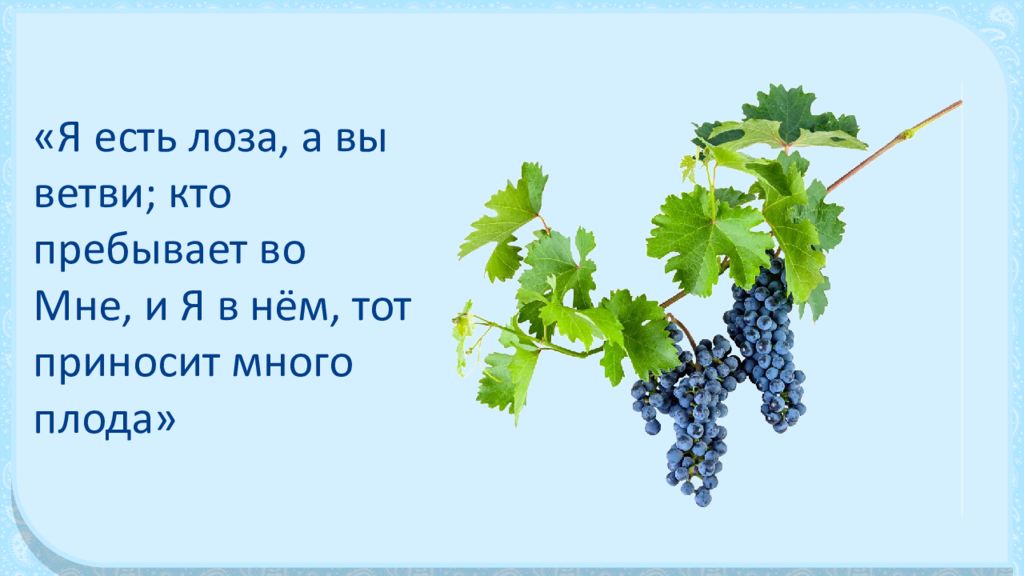 «Я есть лоза, а вы ветви; кто пребывает во Мне, и Я в нём, тот приносит много плода»