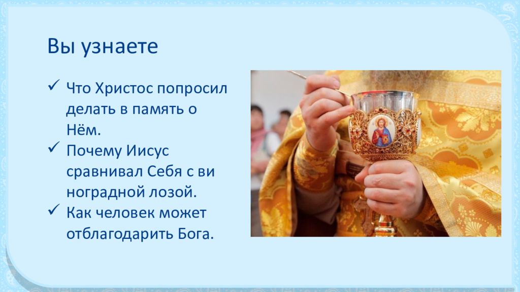 Что Христос попросил делать в память о Нём. Почему Иисус сравнивал Себя с виноградной лозой. Как человек может отблагодарить Бога. Вы узнаете