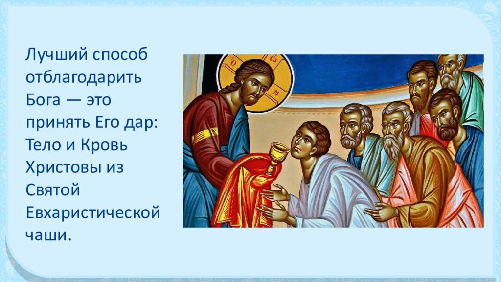 Лучший способ отблагодарить Бога — это принять Его дар: Тело и Кровь Христовы из Святой Евхаристической чаши.