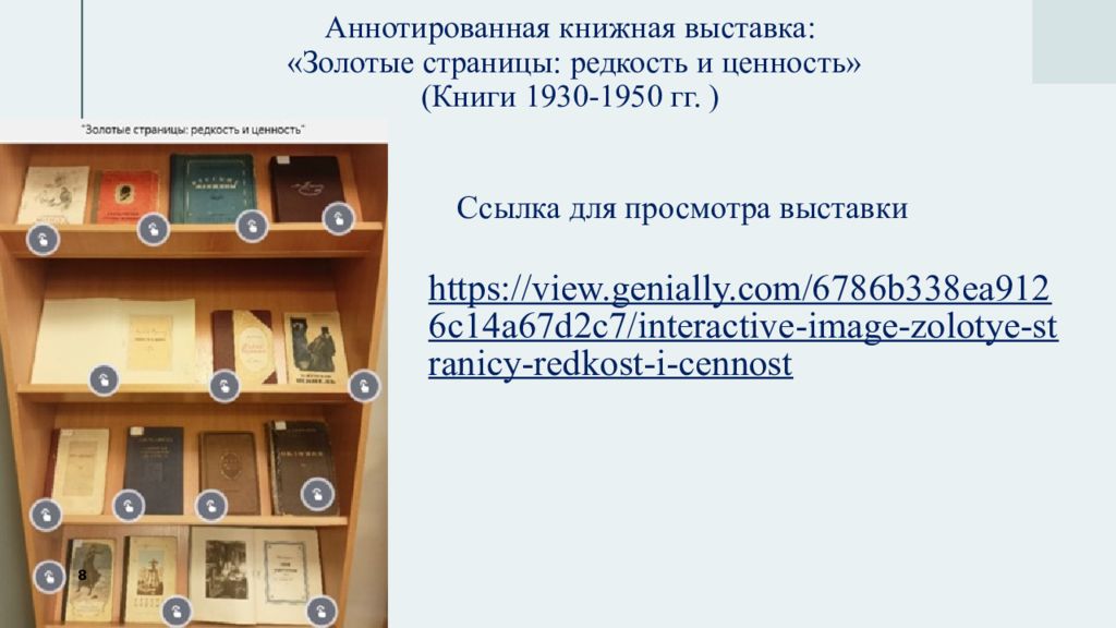 8 https://view.genially.com/6786b338ea9126c14a67d2c7/interactive-image-zolotye-stranicy-redkost-i-cennost Ссылка для просмотра выставки