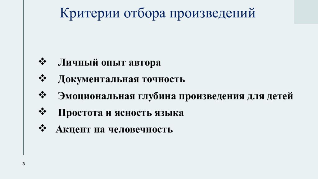 Личный опыт автора Документальная точность Эмоциональная глубина произведения для детей Простота и ясность языка Акцент на человечность 3