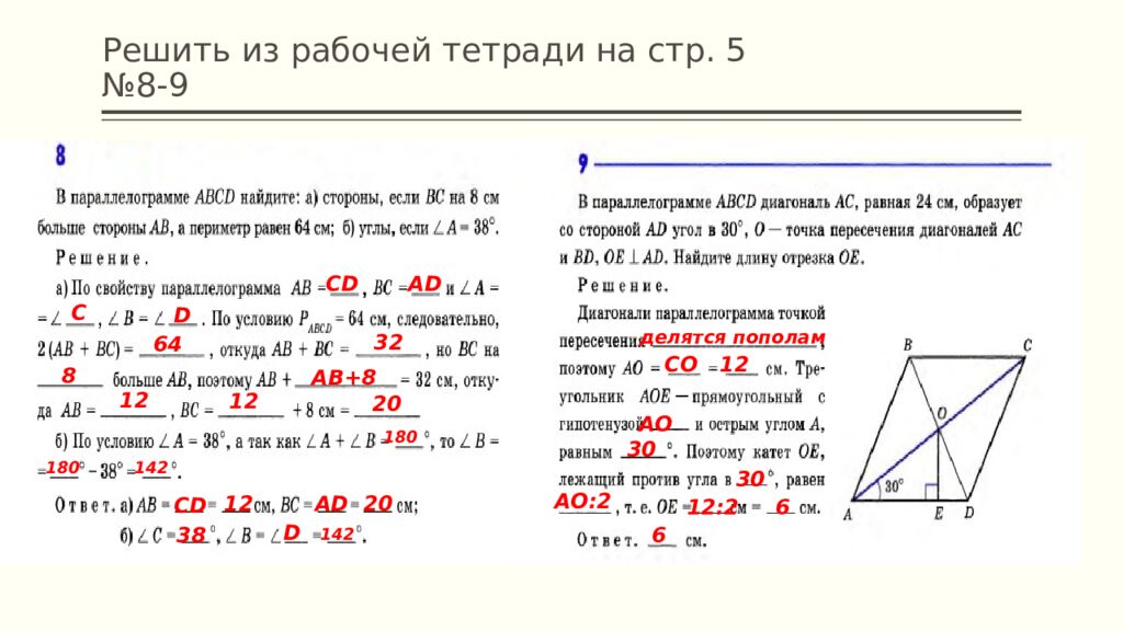 CD AD C D 64 32 8 AB+8 12 12 20 180 180 142 CD 12 AD 20 38 D 142 делятся пополам CO 12 AO 30 30 AO:2 12:2 6 6