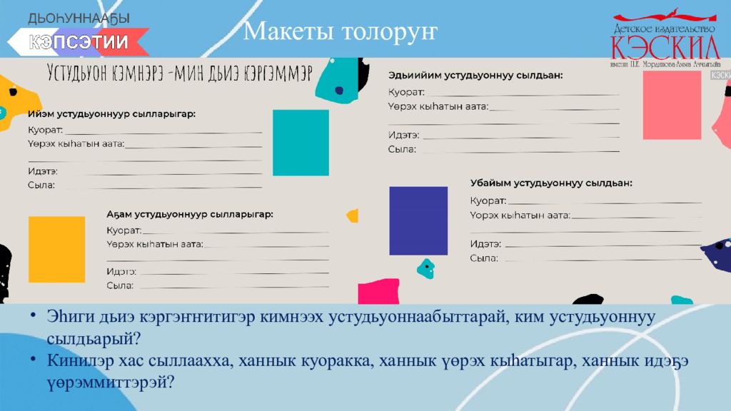 Эһиги дьиэ кэргэҥҥитигэр кимнээх устудьуоннаабыттарай, ким устудьуоннуу сылдьарый? Кинилэр хас сыллаахха, ханнык куоракка, ханнык үөрэх кыһатыгар, ханнык идэҕэ үөрэммиттэрэй? Макеты толоруҥ