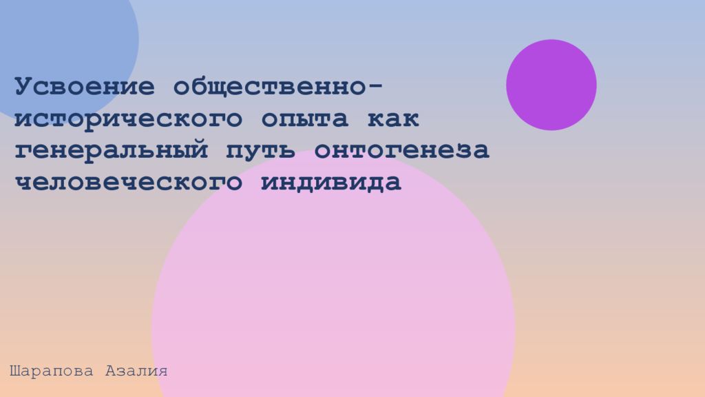 Первый слайд презентации: Усвоение общественно-исторического опыта как генеральный путь онтогенеза человеческого индивида