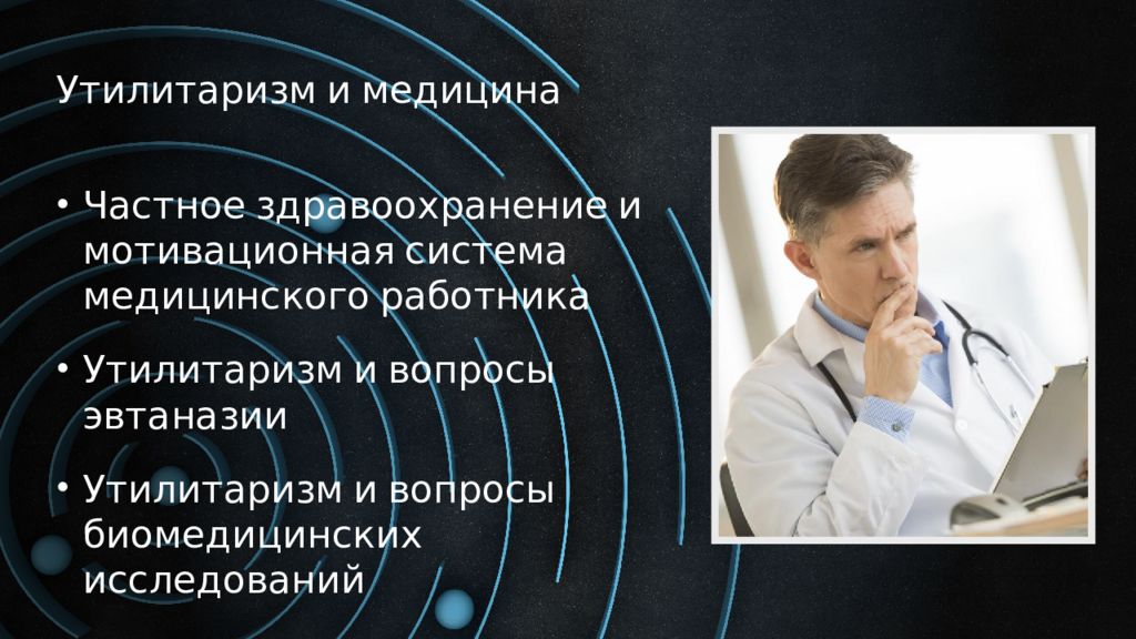 Утилитаризм и медицина Частное здравоохранение и мотивационная система медицинского работника Утилитаризм и вопросы эвтаназии Утилитаризм и вопросы биомедицинских исследований