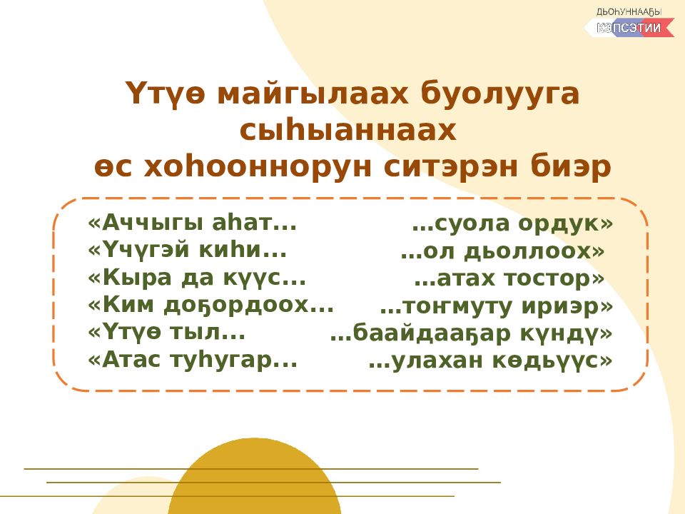 Последний слайд презентации: Үтүө дьыала диэн тугуй ? То ҕо нааданый ?»