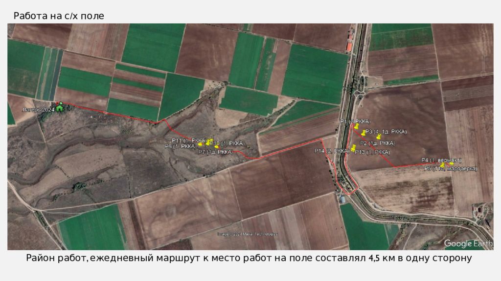 Район работ, ежедневный маршрут к место работ на поле составлял 4,5 км в одну сторону Работа на с/х поле