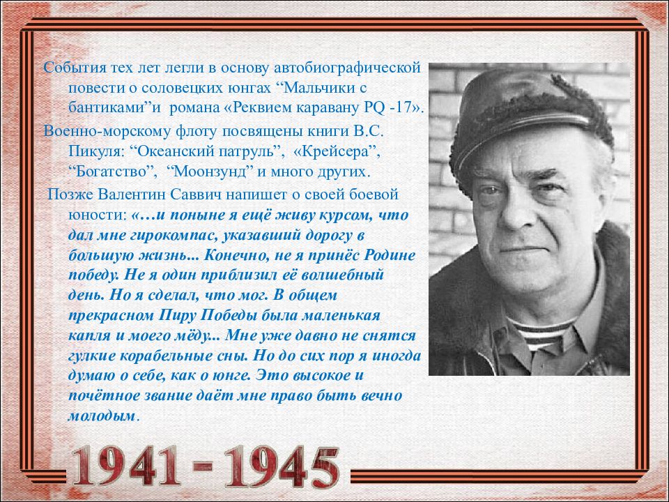 Слайд 13: Валентин Пикуль - юнга Северного флота