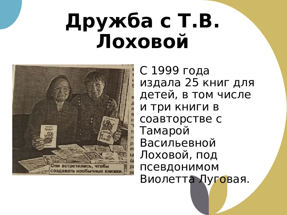 Слайд 4: Дружба с Т.В. Лоховой