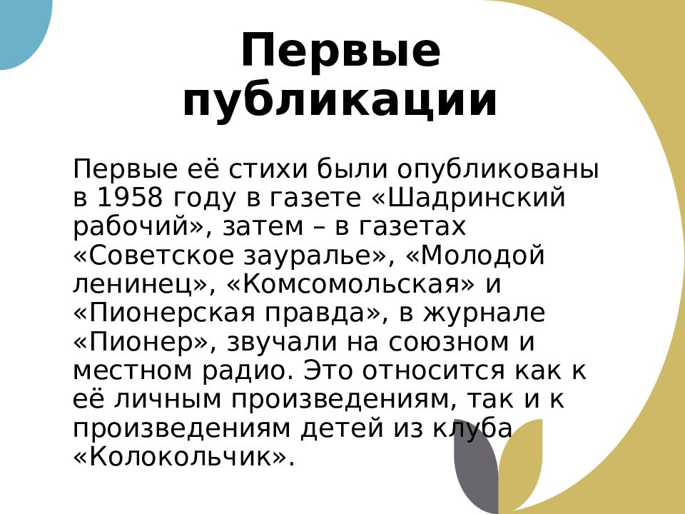 Слайд 3: Первые публикации