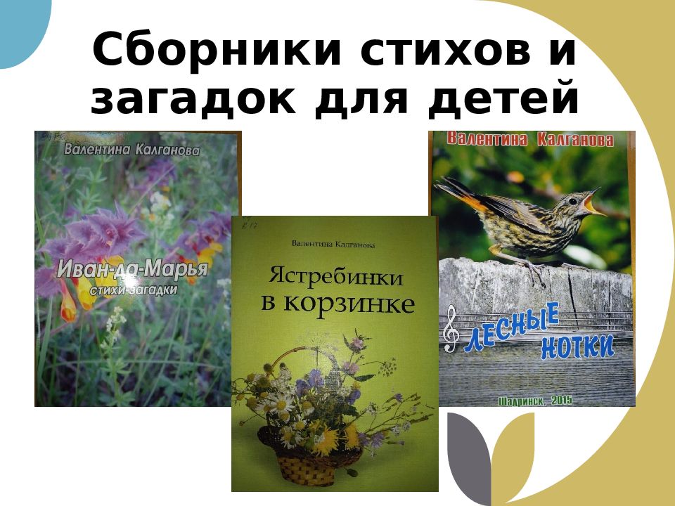 Первые её стихи были опубликованы в 1958 году в газете « Шадринский рабочий», затем – в газетах «Советское зауралье », «Молодой ленинец», «Комсомольская» и «Пионерская правда», в журнале «Пионер», звучали на союзном и местном радио. Это относится как к её личным произведениям, так и к произведениям детей из клуба «Колокольчик».