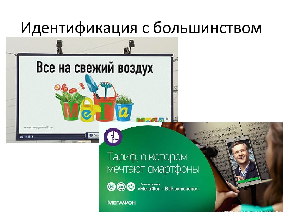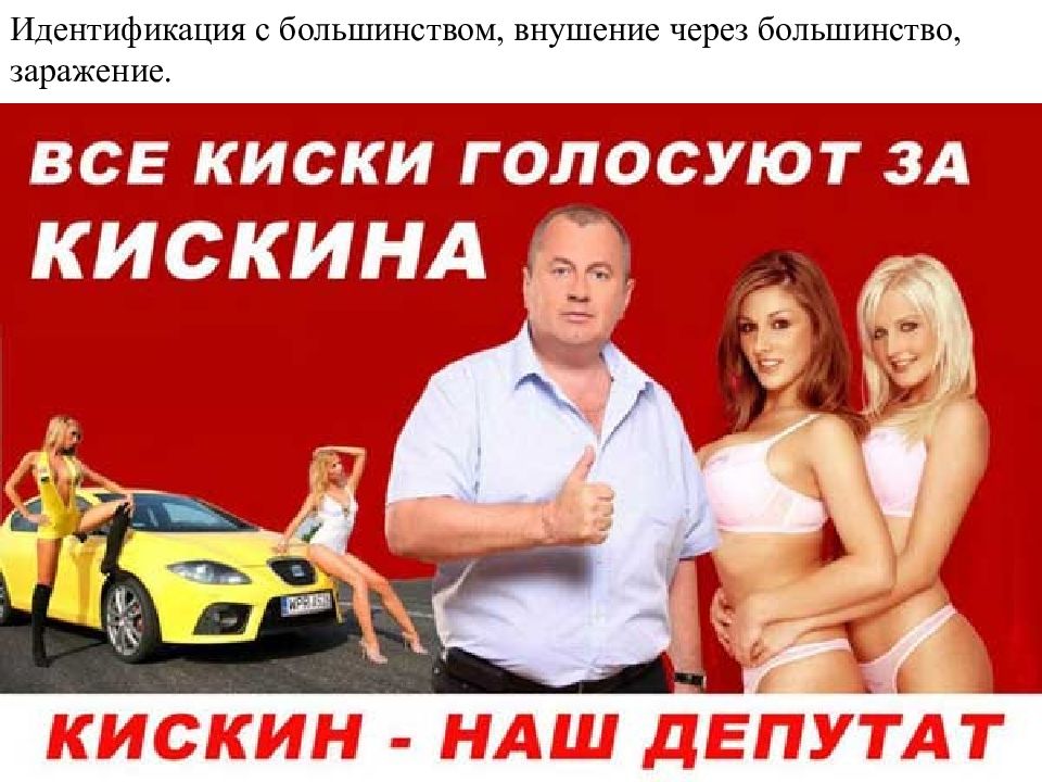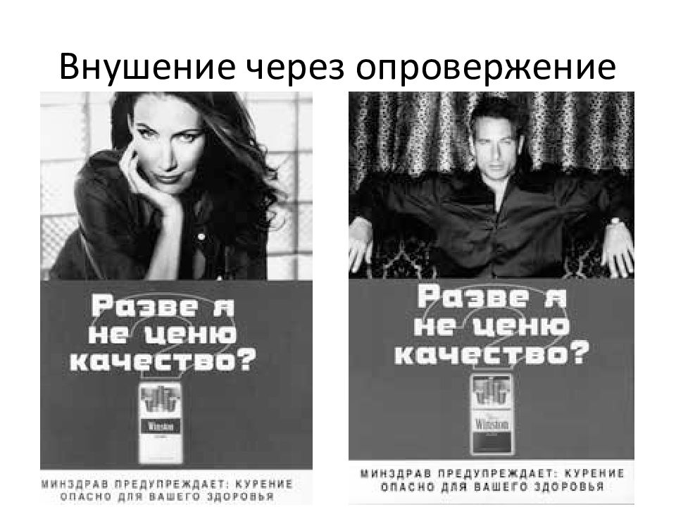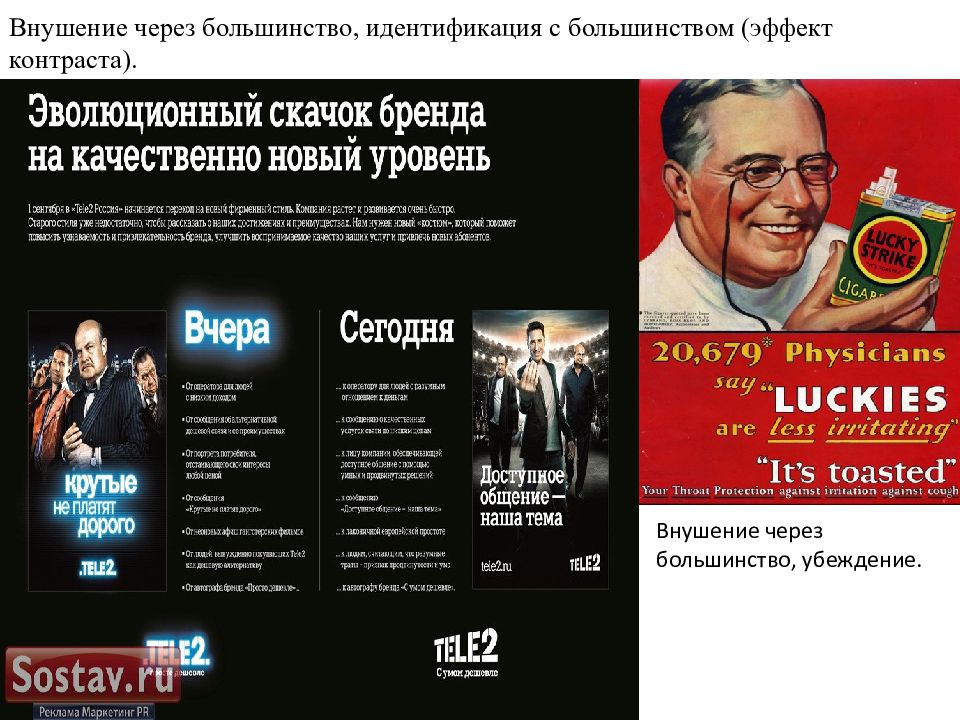 Внушение через большинство, идентификация с большинством (эффект контраста). Внушение через большинство, убеждение.