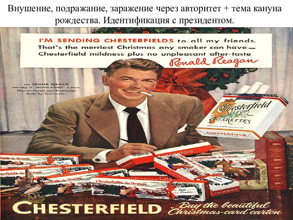 Внушение, подражание, заражение через авторитет + тема кануна рождества. Идентификация с президентом.