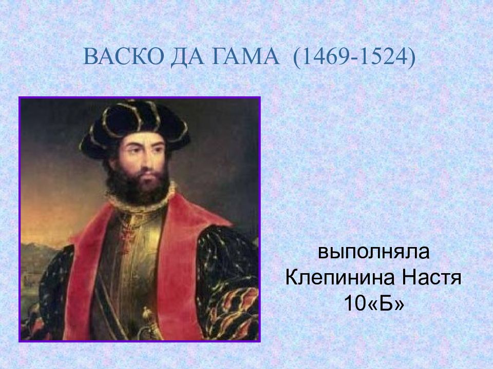 ВАСКО ДА ГАМА (1469-1524) выполняла Клепинина Настя 10«Б»
