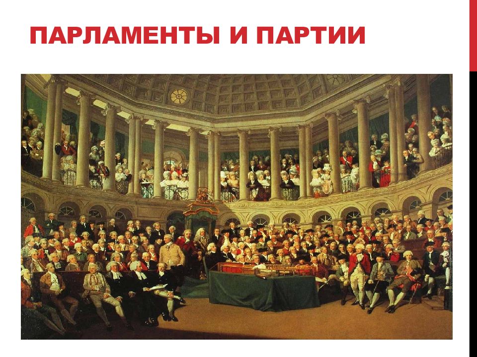 Парла́мент — высший представительный и законодательный орган в государствах. Политическая па́ртия — объединённая группа людей, ставящая перед собой задачи овладеть политической властью в государстве или принять в ней участие через своих представителей в органах государственной власти и местного самоуправления.