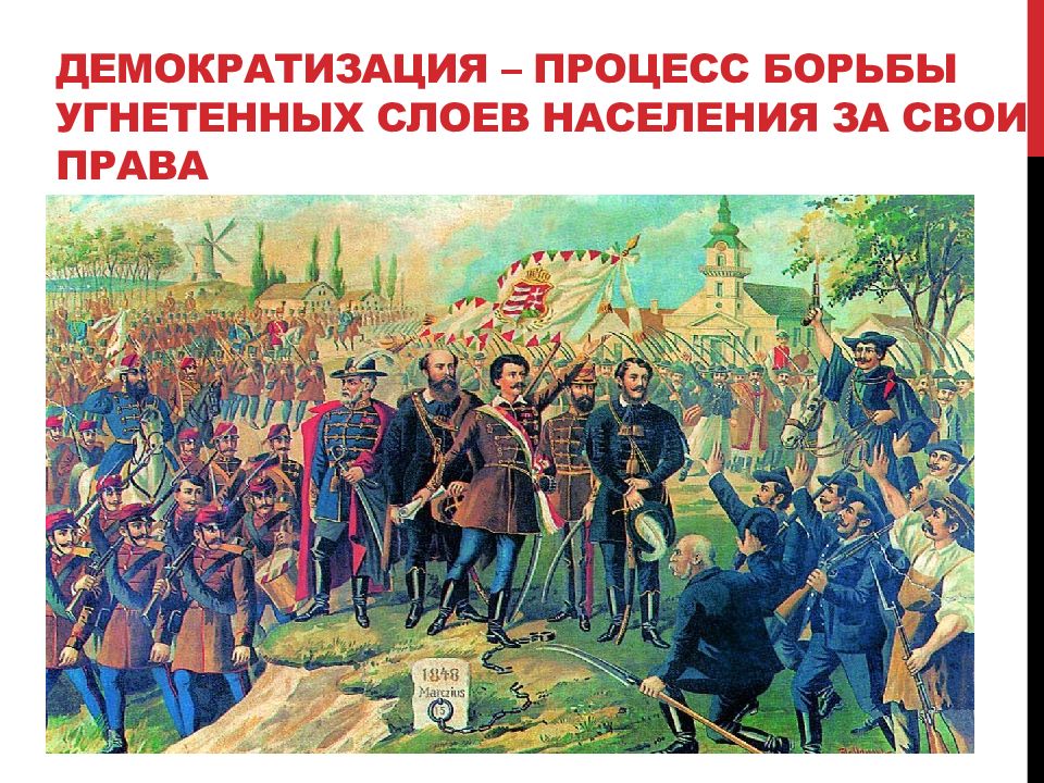 Слайд 7: Демократизация – процесс борьбы угнетенных слоев населения за свои права