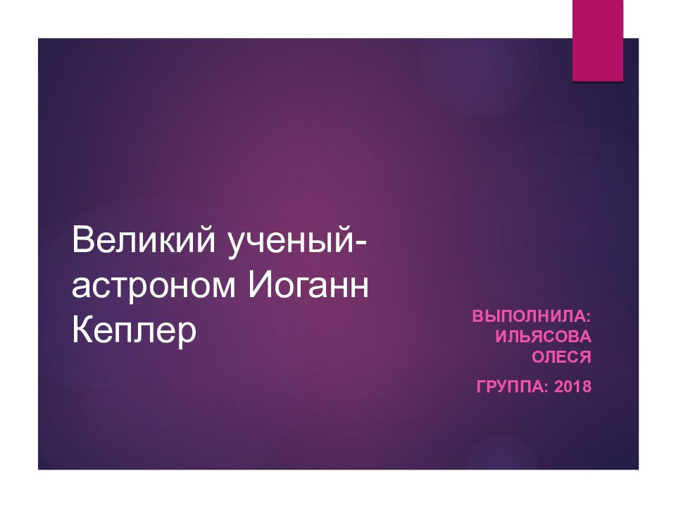 Первый слайд презентации: Великий ученый-астроном Иоганн Кеплер