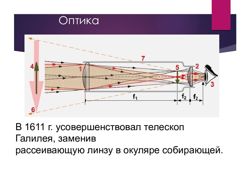 В 1611 г. усовершенствовал телескоп Галилея, заменив рассеивающую линзу в окуляре собирающей.