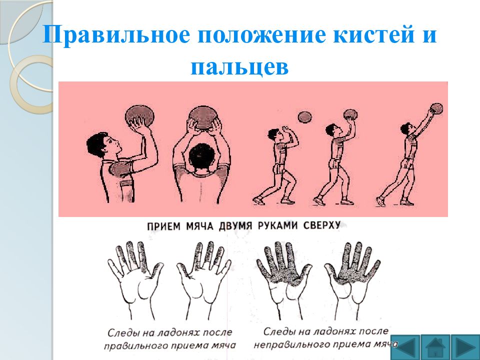 Последний слайд презентации: Верхняя передача мяча двумя руками сверху