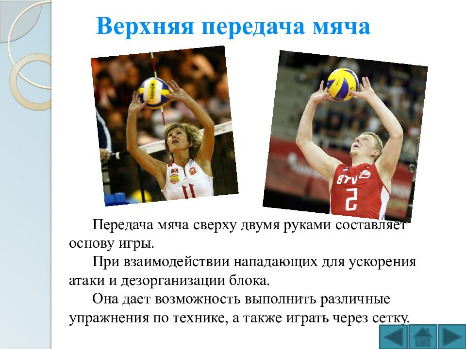 Слайд 6: Верхняя передача мяча