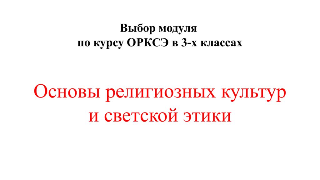 Выбор модуля по курсу ОРКСЭ в 3-х классах Основы религиозных культур и светской этики