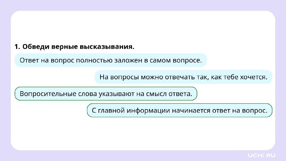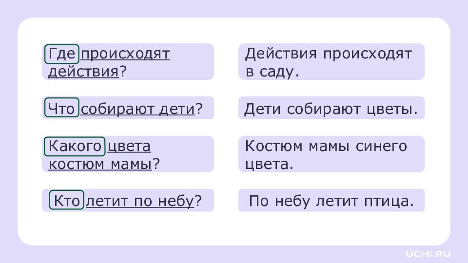 Выбор языковых средств для ответа на заданный вопрос 2 класс