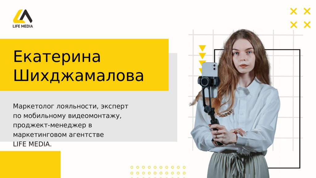 Екатерина Шихджамалова Маркетолог лояльности, эксперт по мобильному видеомонтажу, проджект -менеджер в маркетинговом агентстве LIFE MEDIA.