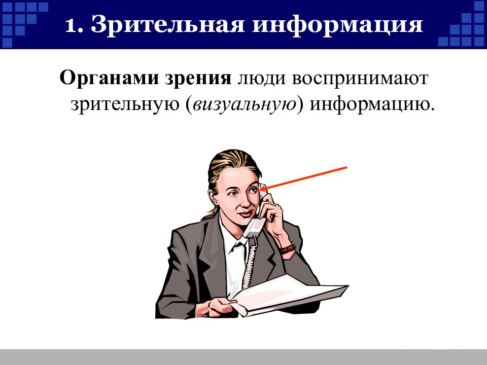 Слайд 6: 1. Зрительная информация