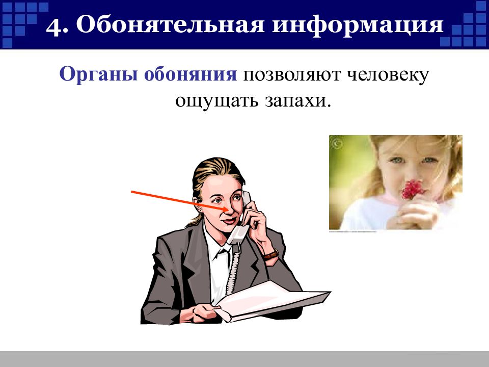 Слайд 9: 4. Обонятельная информация